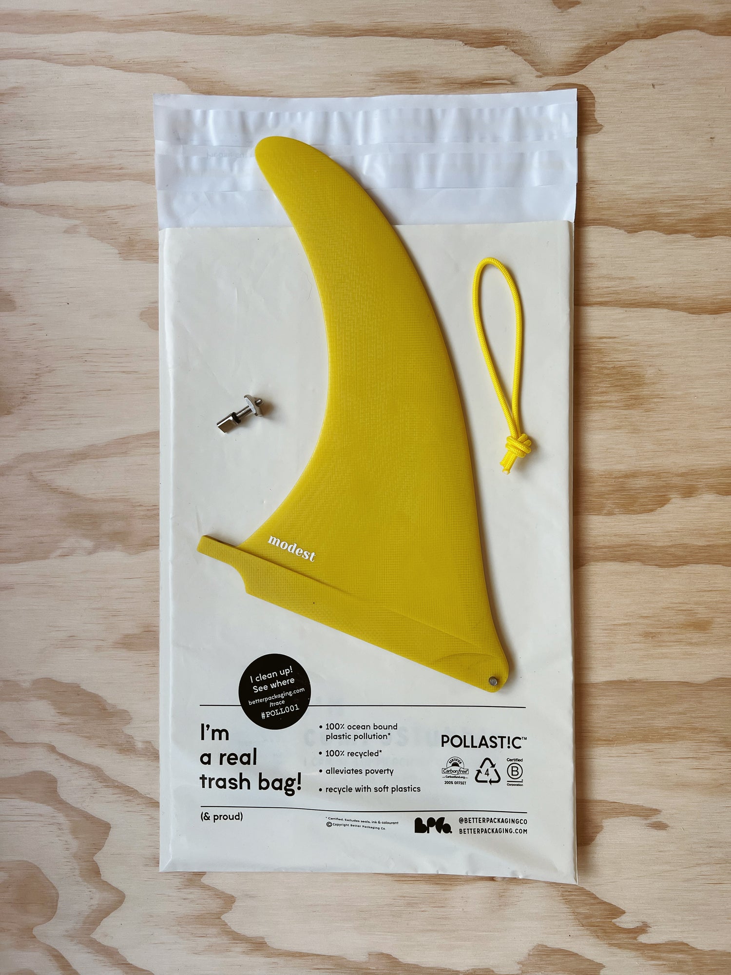 All of our modest fins are delivered to you in Better Packaging Co's 100% recyclable mailer made from ocean bound plastic with a compostable bubble insert to keep your fin protected.